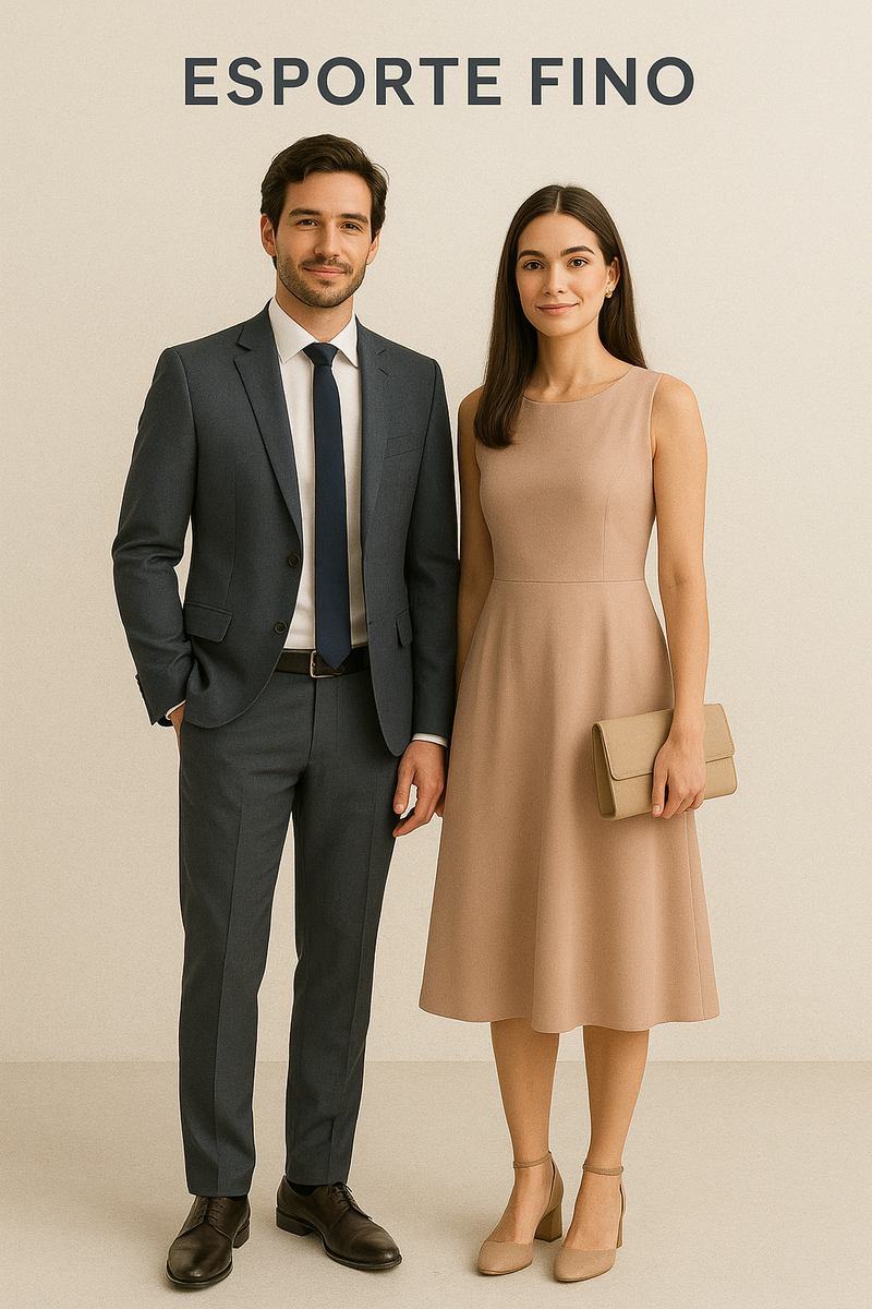 Queremos que você esteja elegante, confortável e pronto para aproveitar cada momento dessa celebração. Por isso, sugerimos o traje esporte fino, que traz sofisticação sem perder a leveza.